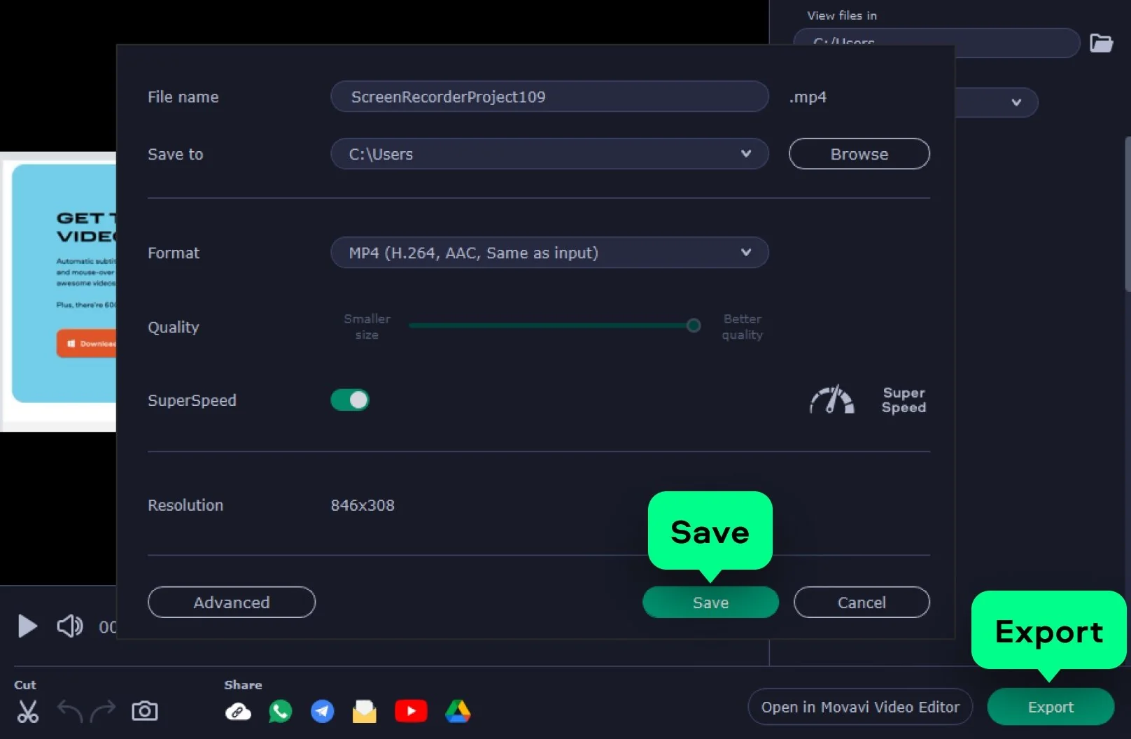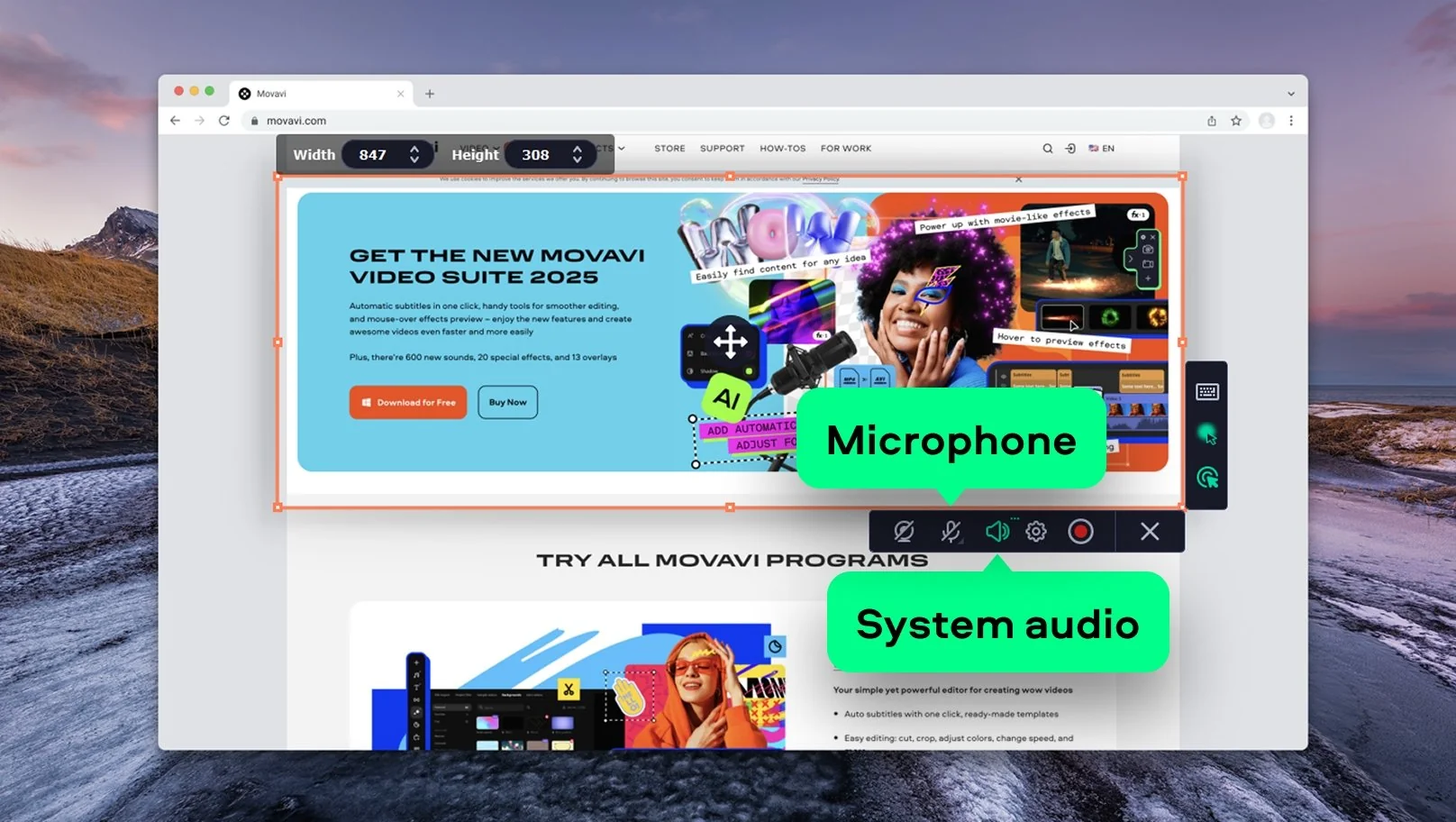 When I record YouTube videos using Movavi Screen Recorder for instance, I can select exactly which area of my screen to capture, choose my audio sources independently, add webcam overlays, and even schedule recordings to start automatically. The built-in editor means I don't need to export to another program for basic trimming and adjustments.