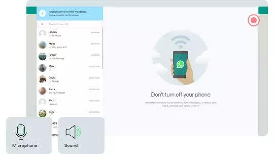 Decide what you want to record – screen, audio, microphone, or the whole meeting with all sounds and video playback. Enable or disable the appropriate icons.
