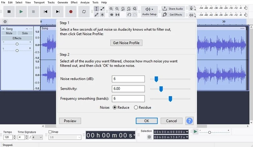 Step 2. Capture a Noise Profile and apply Noise Reduction
