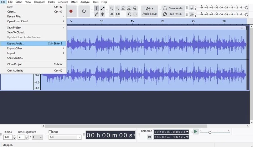 Go to File, Export Audio and save your cleaned file. Open your video editor again, replace the original noisy track with the cleaned version, sync it to the video, and export your final project.